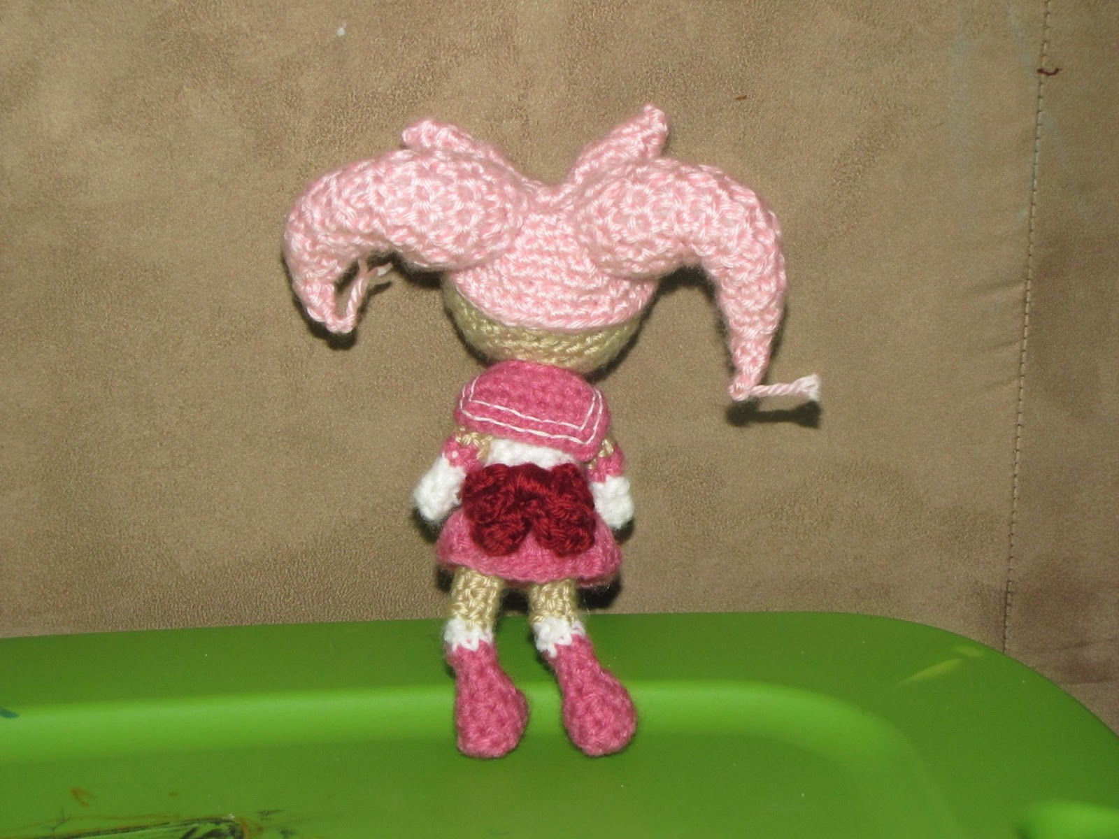 and then her pigtails. I did them as separate pieces I sewed on instead of crocheting straight on like I did with Jupiter's ponytail. same concept in shaping though.